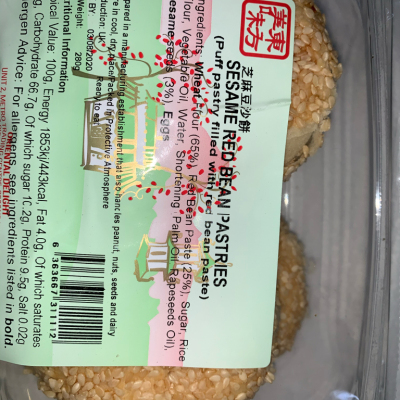 东方美味芝麻豆沙酥280g/盒